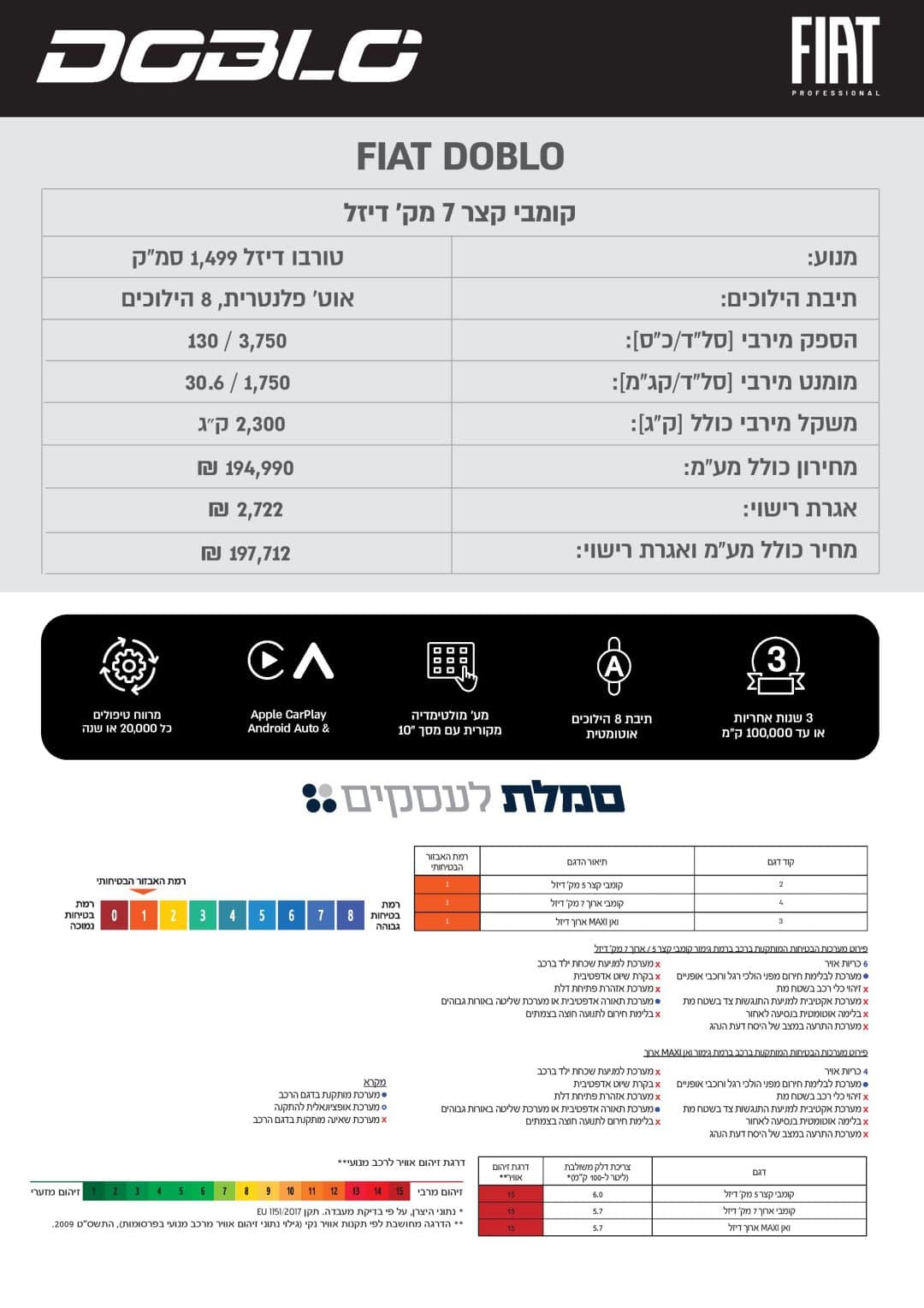 מפרט 2025 - פיאט פרו דובלו קומבי קצר 5