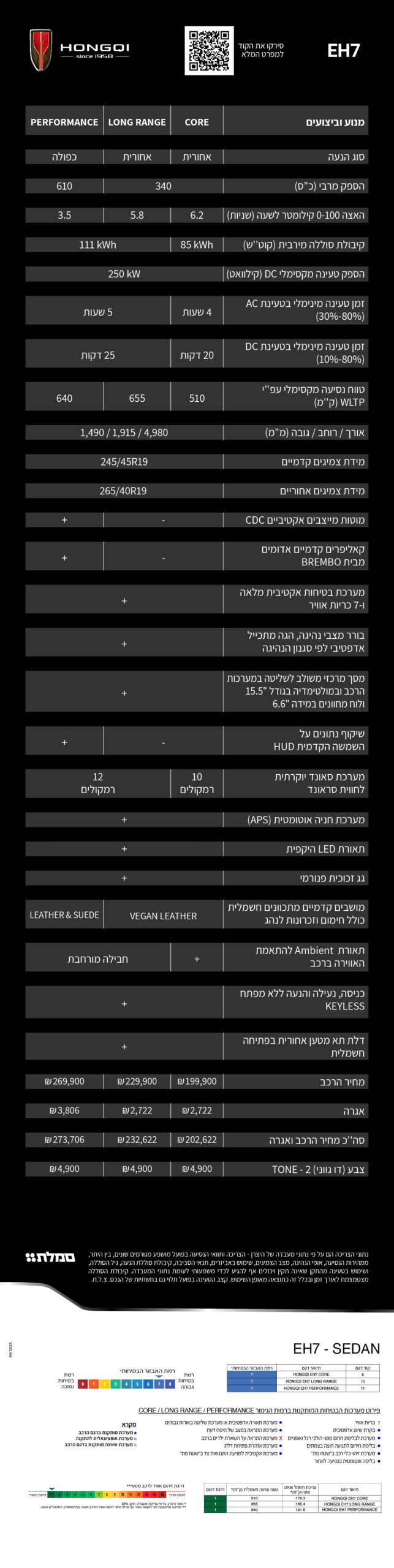 מפרט 2025 - הונגצ'י - Hongqi e-hs9