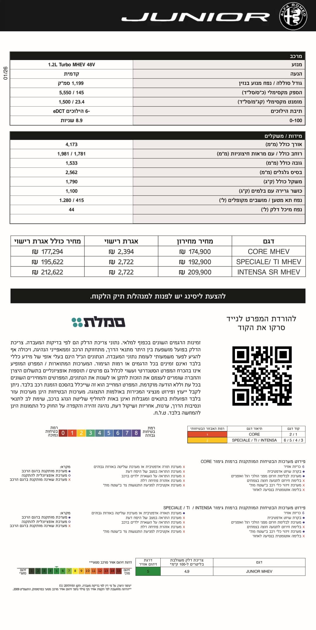 מפרט 2026 – אלפא רומיאו – ג'וניור