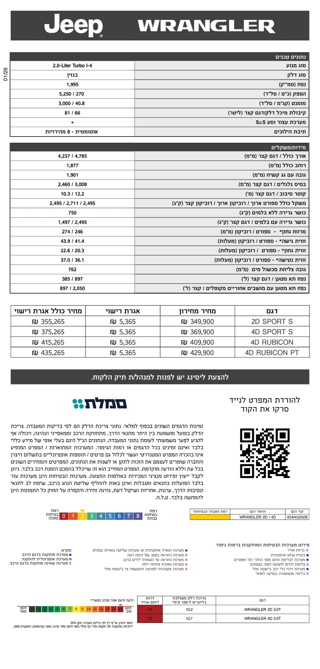 מפרט 2026- ג'יפ רנגלר