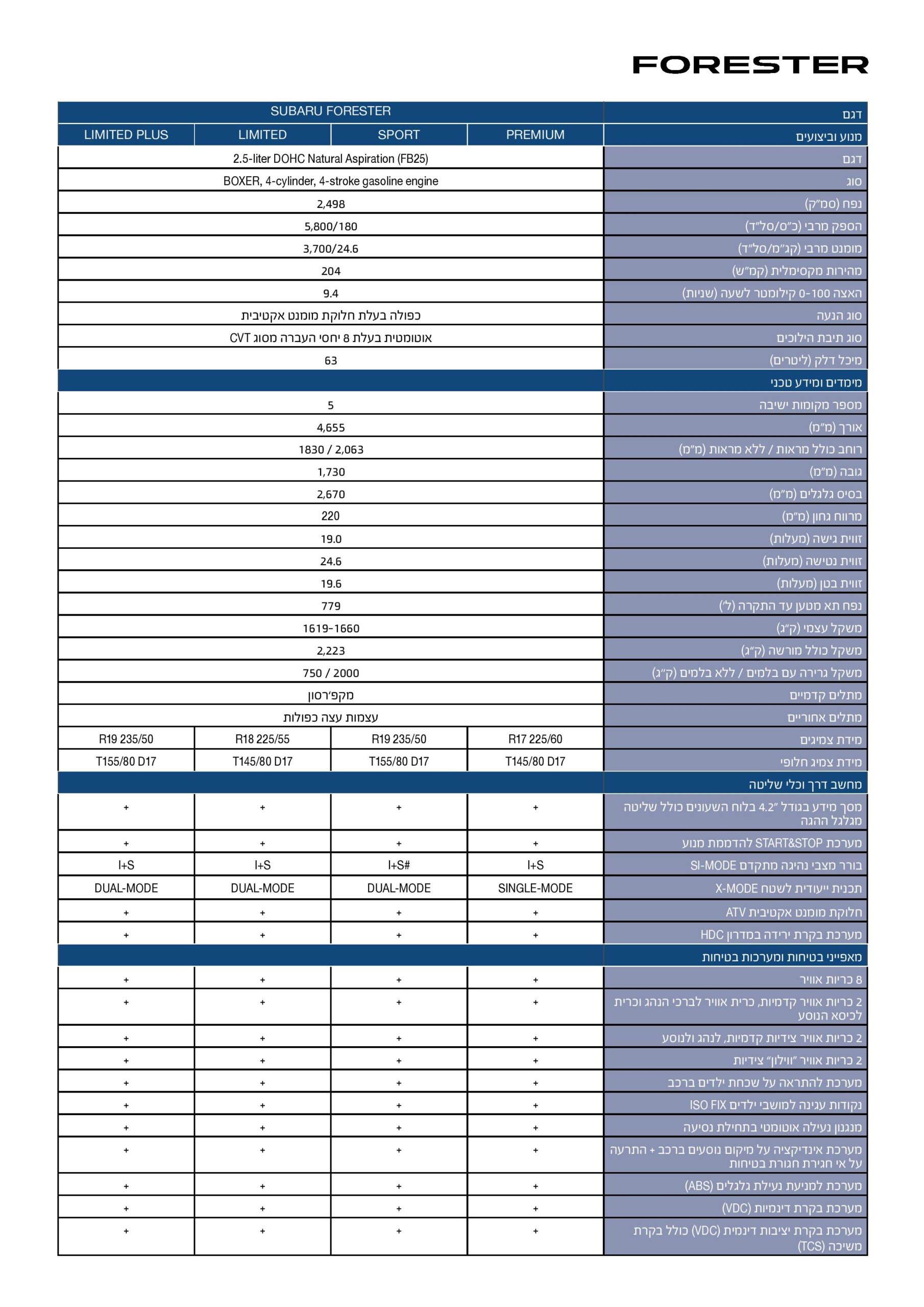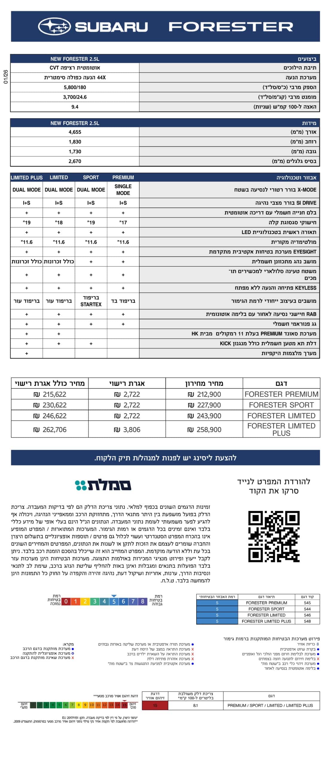 מפרט 2026 – סובארו קרוסטרק 2.5