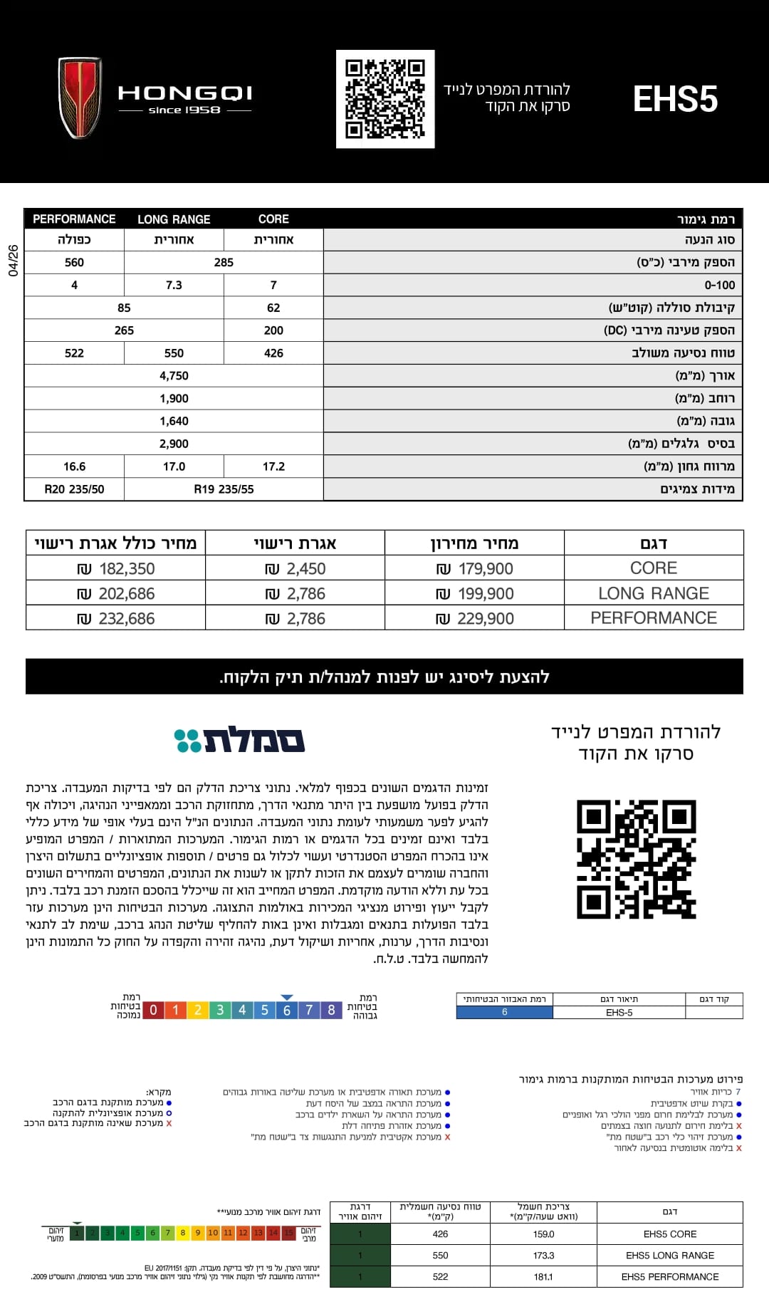 מפרט 2026 – הונגצ'י EHS5