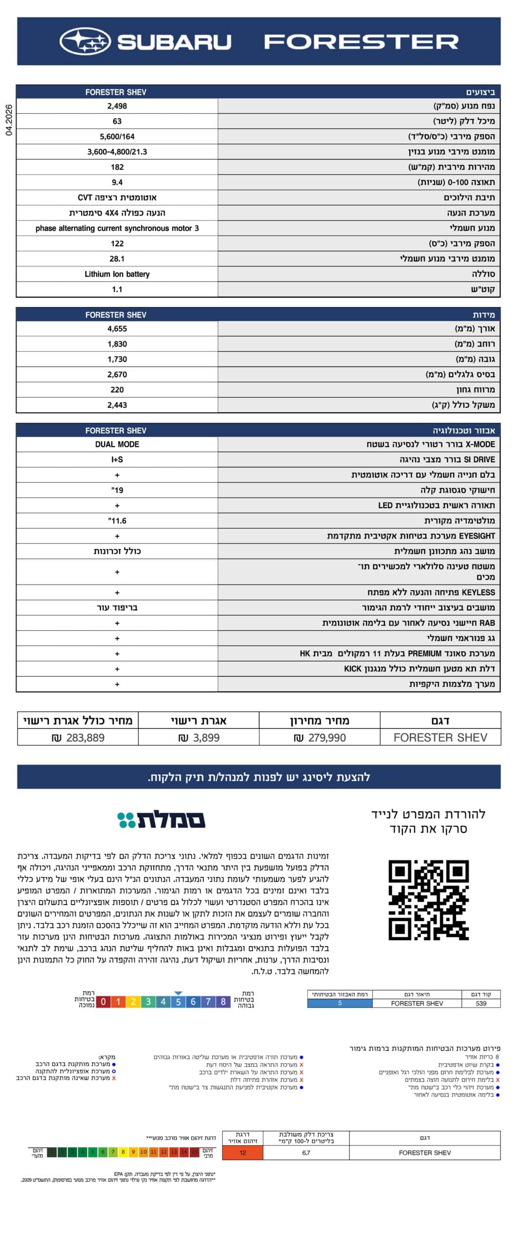 מפרט 2026 – סובארו קרוסטרק 2.5