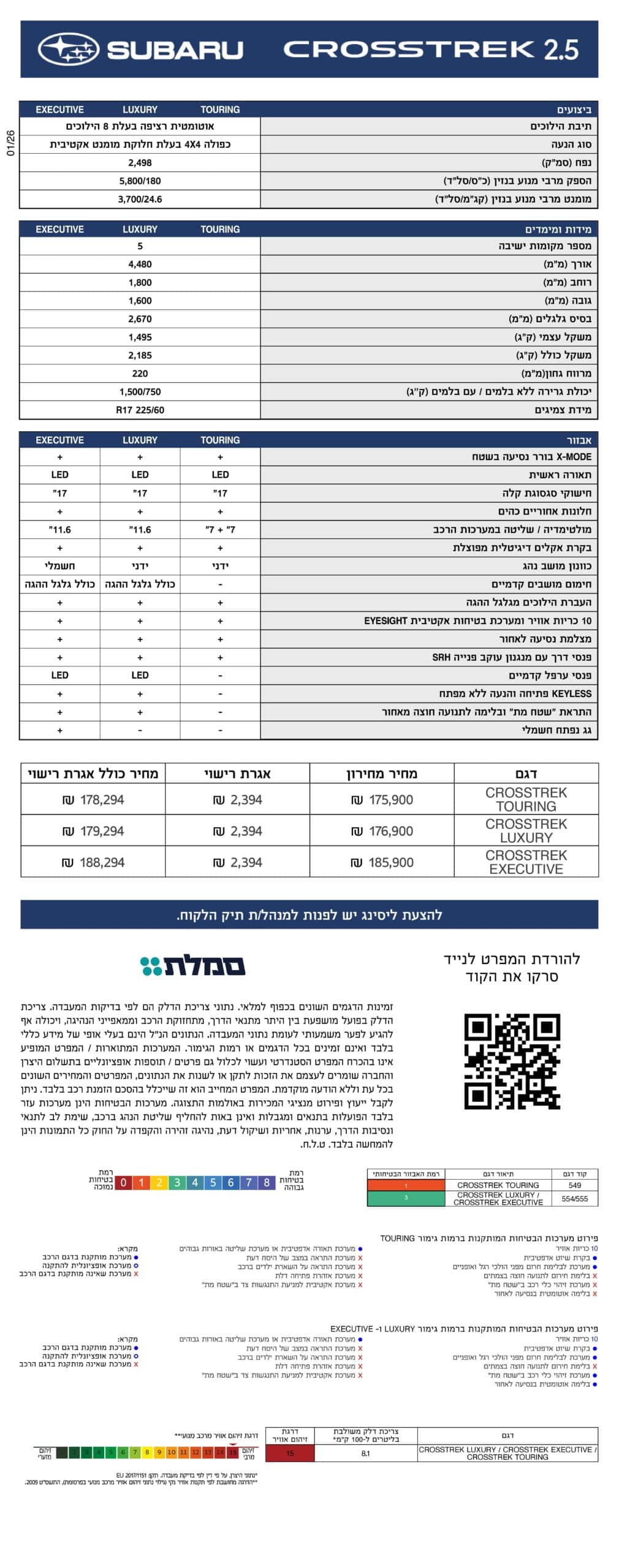 מפרט 2026 – סובארו קרוסטרק 2.5