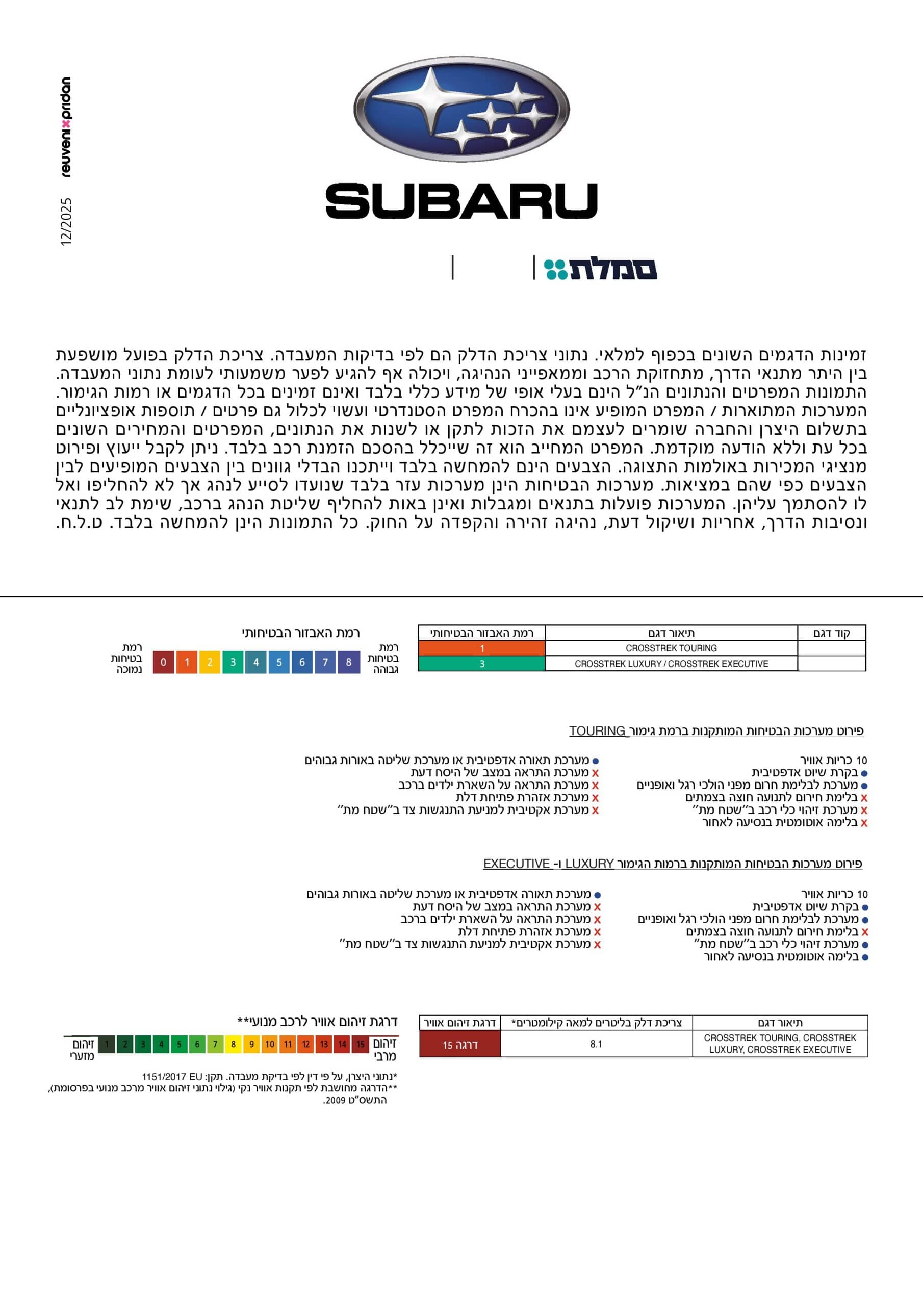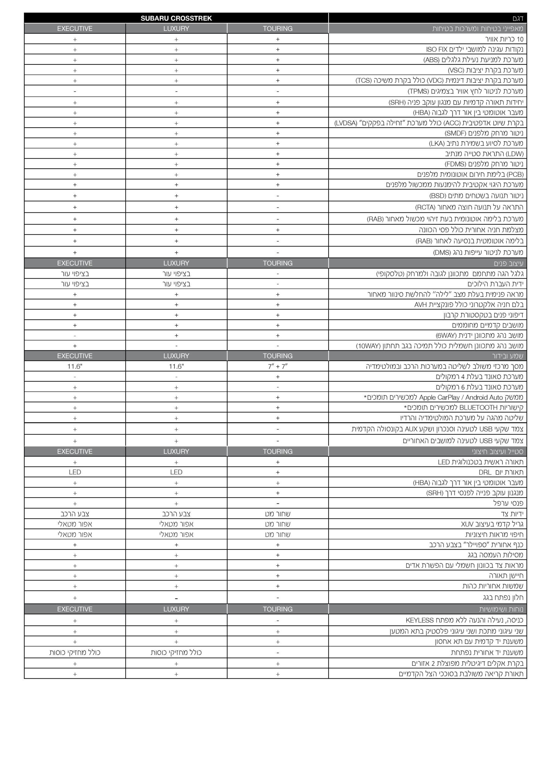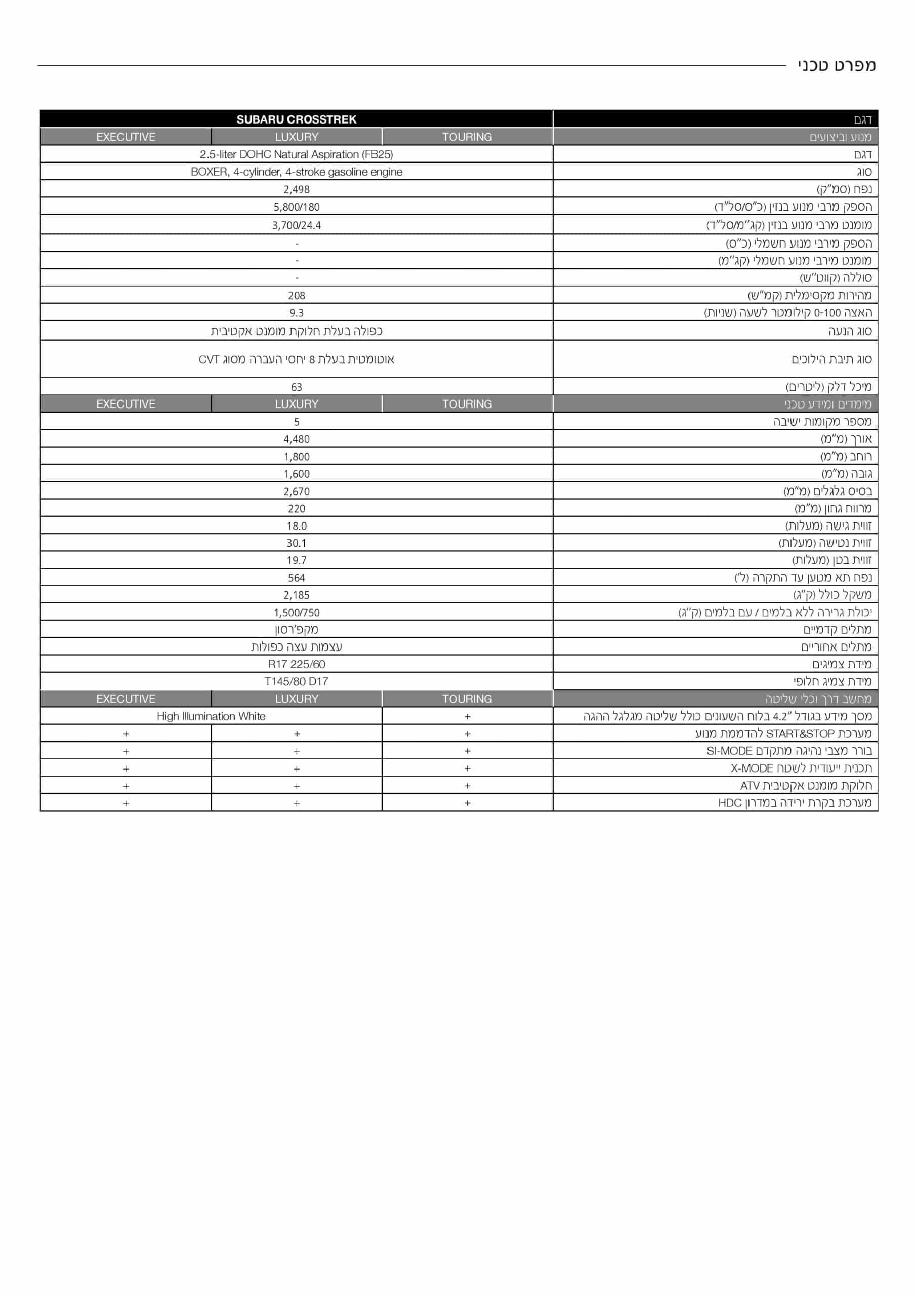 מפרט 2025 - סובארו קרוסטרק