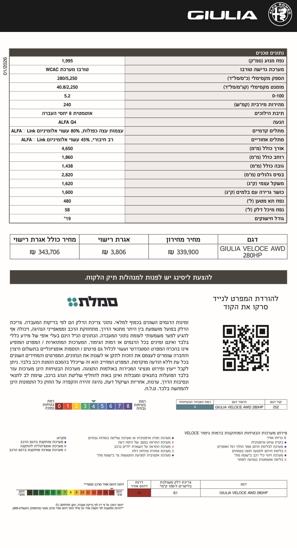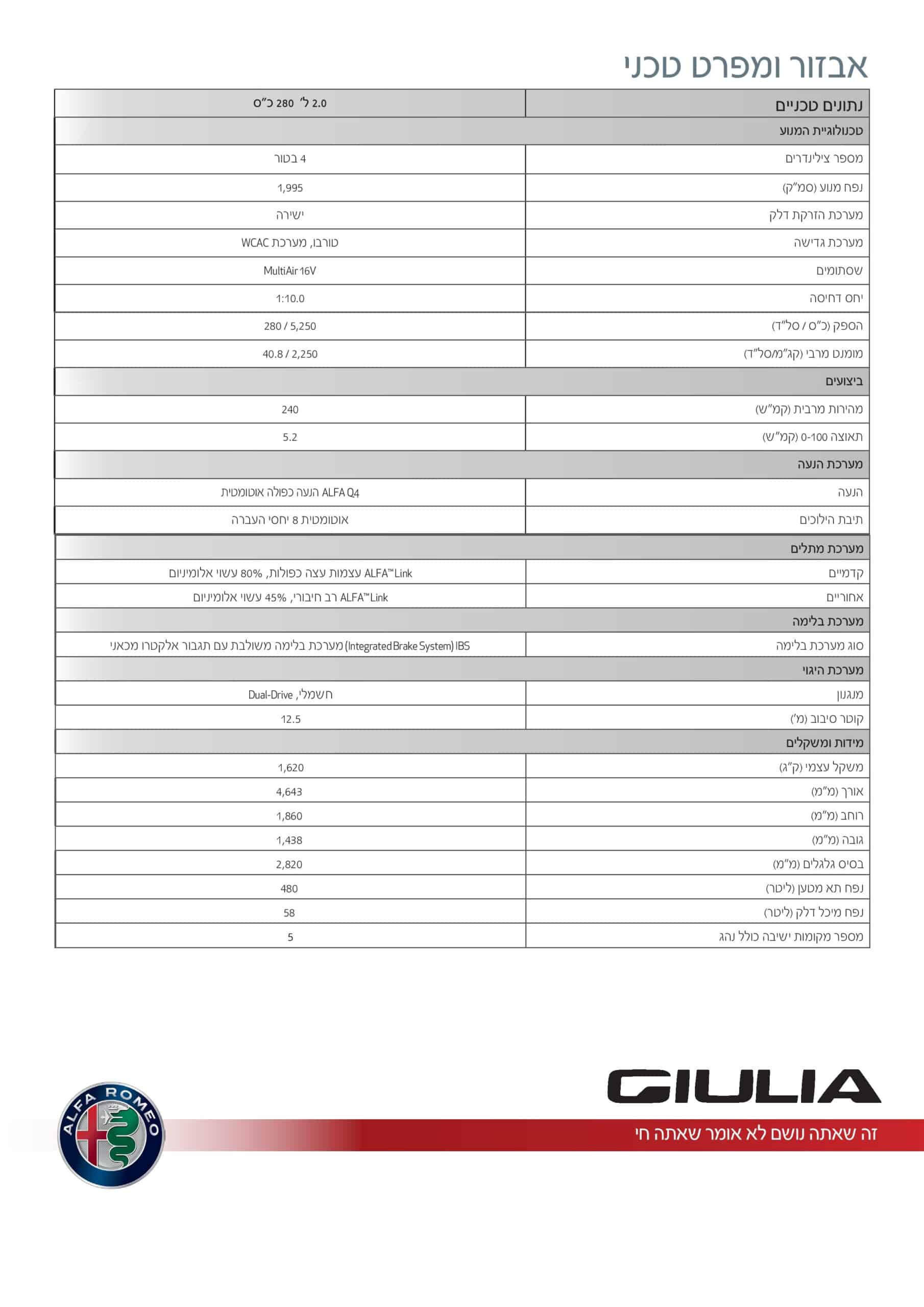 מפרט 2026 אלפא רומיאו ג'וליה – alfa romeo giulia
