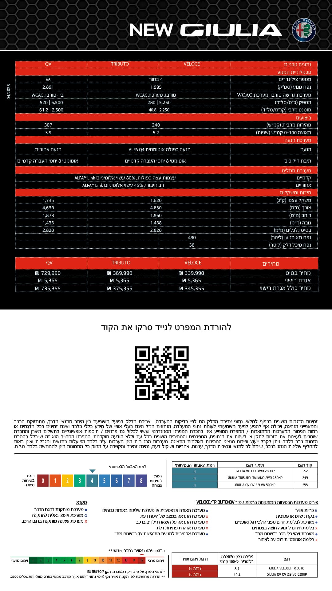 מפרט 2025 אלפא רומיאו ג'וליה – alfa romeo giulia